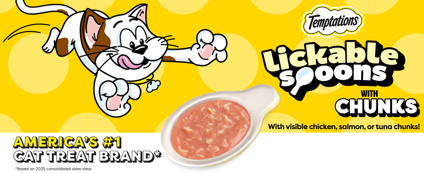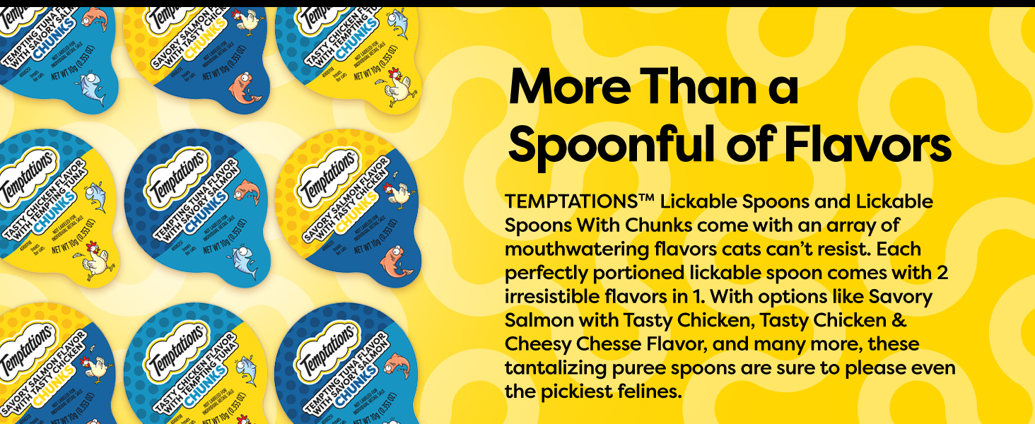 Temptations Lickable Spoons Wet Cat Treat Variety Chunks x 24 - Cucharas lamibles variadas con trozos x 24