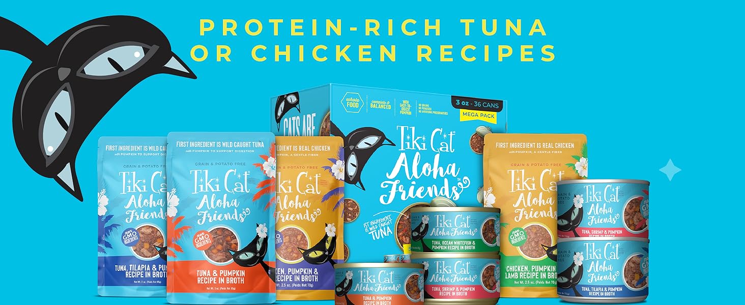 Tiki Cat Aloha - Tuna, Ocean Whitefish & Pumpkin - Atún, Pescado y Calabaza x 156g